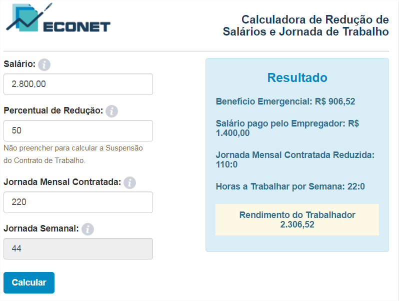 A Econet desenvolveu a ferramenta Simulador de Redução e Suspensão do Contrato, pela qual será possível calcular a jornada e os valores de salário e do BEM individualmente.