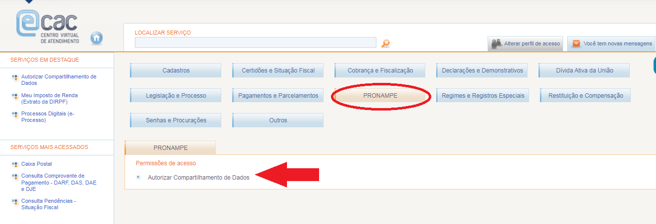 Neste texto, apresentamos um passo a passo para autorizar o compartilhamento de dados Pronampe (Programa Nacional de Apoio às Microempresas e Empresas de Pequeno Porte) para te ajudar com esse procedimento no Portal do Centro Virtual de Atendimento ao Contribuinte (Portal e-CAC).