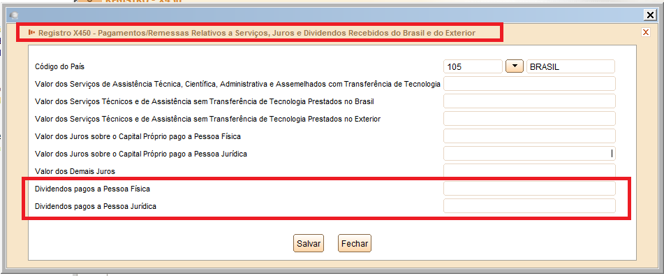 Pagamentos ou Remessas a Título de Serviços, Juros e Dividendos a Beneficiários do Brasil e do Exterior: (X450)
