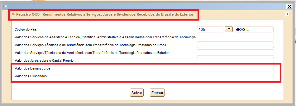 Rendimentos Relativos a Serviços, Juros e Dividendos Recebidos do Brasil e do Exterior: (X430)