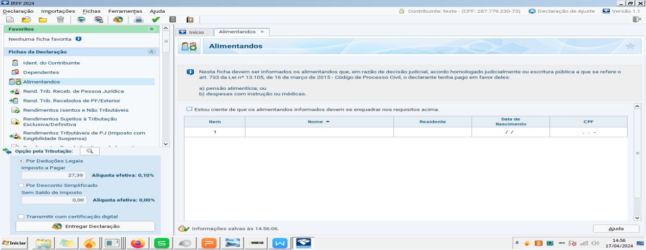 Caso o contribuinte pague pensão alimentícia a seus filhos, não poderá incluí-los como dependentes em sua declaração, mas sim deverá declará-los como alimentandos.