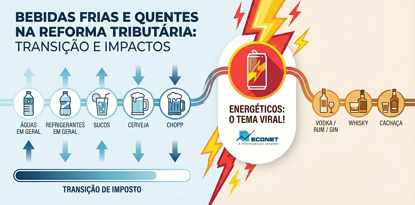 As bebidas frias, como refrigerantes, sucos industrializados, águas, isotônicos, cervejas e outras bebidas prontas para consumo, possuem cadeias tributárias mais consolidadas no modelo atual. Durante a transição, essas operações passam a incorporar a CBS e o IBS, enquanto parte da tributação tradicional ainda permanece.