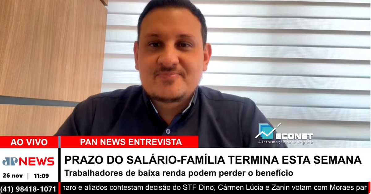No dia 26 de novembro, a rádio Jovem Pan News Curitiba entrevistou o advogado Claudio Artur Biazetto Prehs, coordenador da área trabalhista e previdenciária da Econet Editora, para uma entrevista especial no programa apresentado pelo jornalista João Salgado. O tema foi o salário-família, benefício previdenciário essencial para muitos trabalhadores brasileiros e que ainda gera diversas dúvidas no dia a dia das empresas e dos segurados.